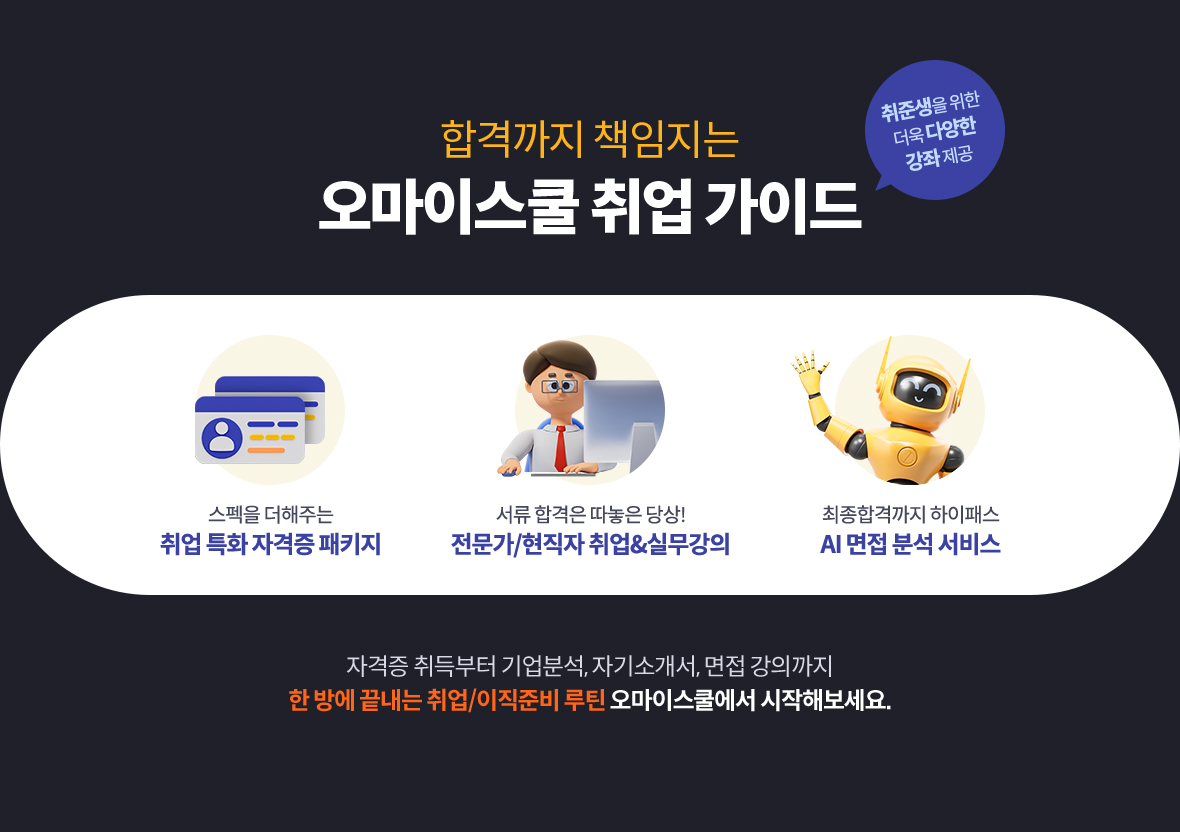 환불 및 취소는 오마이스쿨의 환불규정에 따르며, 환불 시 제공 혜택은 취소 및 환불금에서 차감될 수 있습니다.